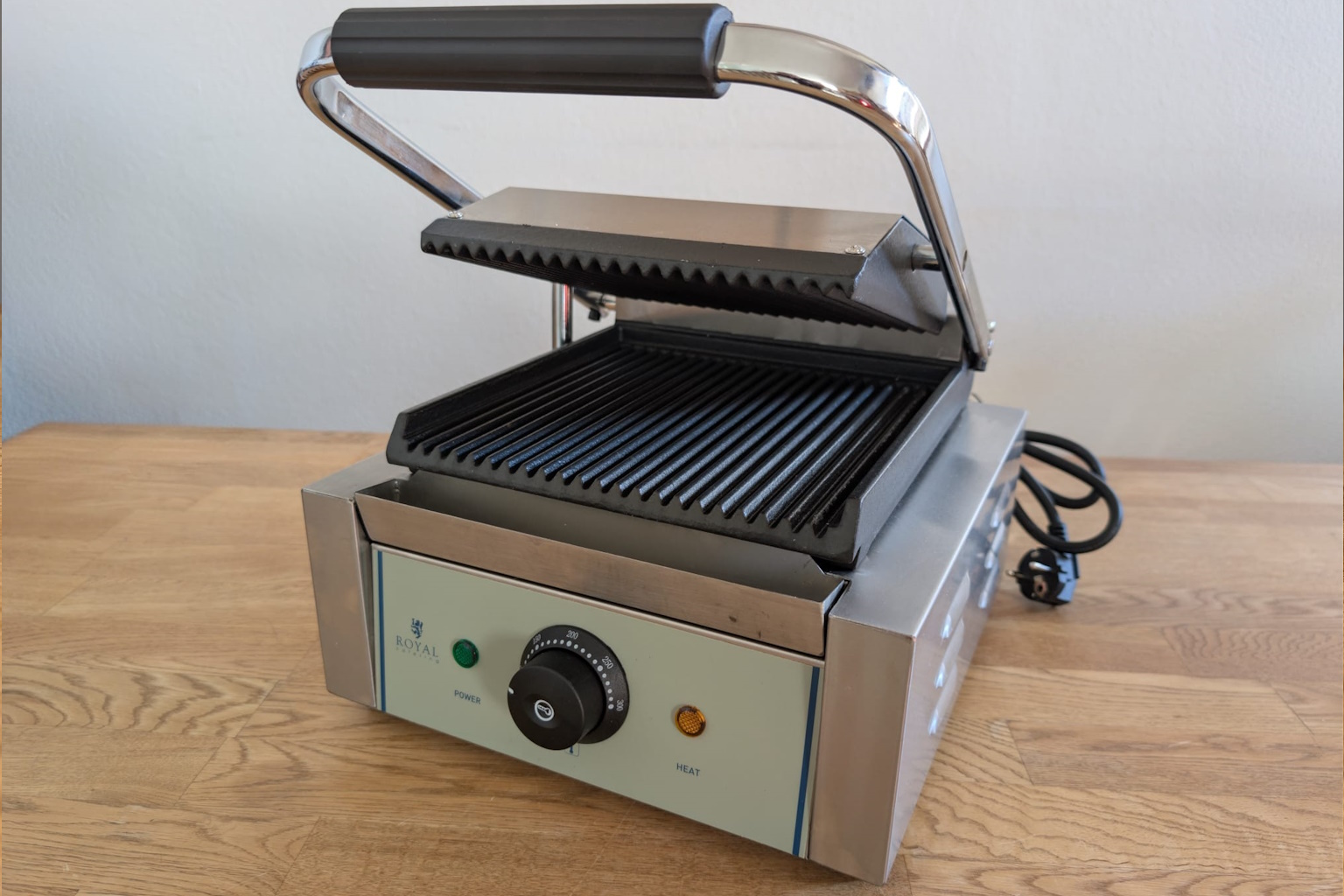 Unser Kontaktgrill mit 1.800 Watt, Timer und Temperaturregelung sorgt für perfekt gegrillte Panini, Fleisch und Snacks – ideal für dein Event.