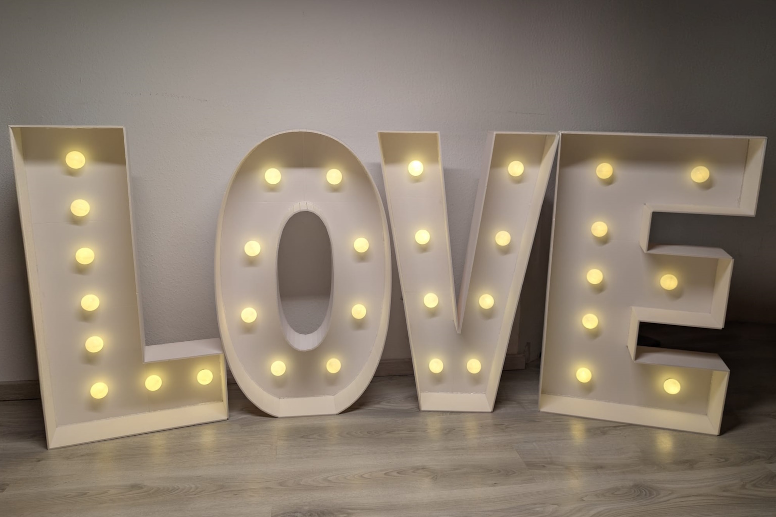 Unsere großen, beleuchteten Love-Buchstaben setzen strahlende Highlights und werden zum Blickfang auf deinem Event.