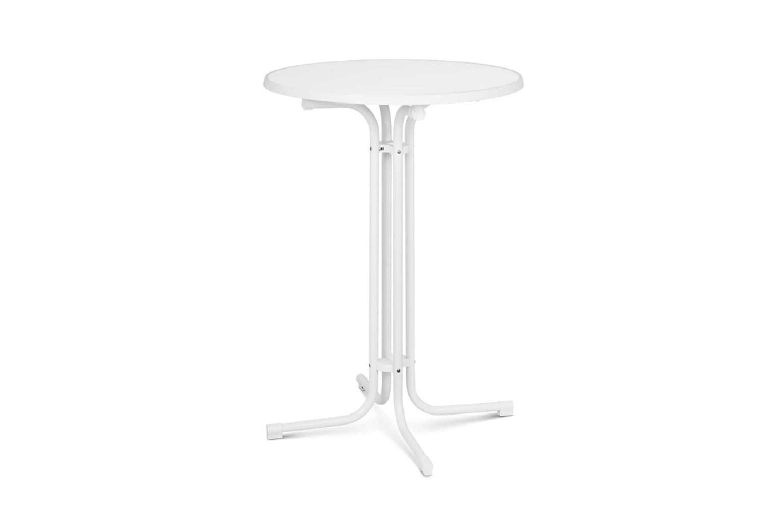 Stilvoller, klappbarer Stehtisch in Weiß (70 oder 80 cm) mit höhenverstellbaren Füßen für optimalen und sicheren Stand.
